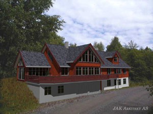 Tegninger lages digitale og fasader/perspektiv utformes som fotorealistiske bilder med evt.- bilde av tomten som bakgrunn.(se eksempel nedenfor.)